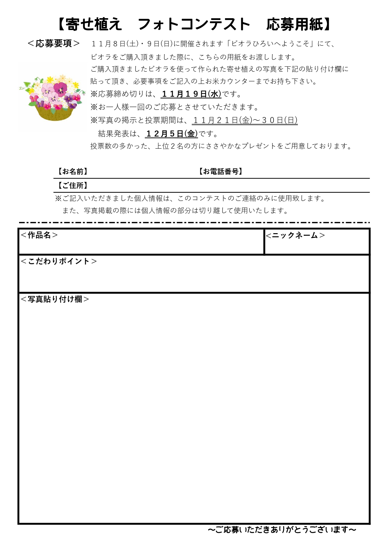 ※応募用紙はビオラご購入時にお渡ししております。