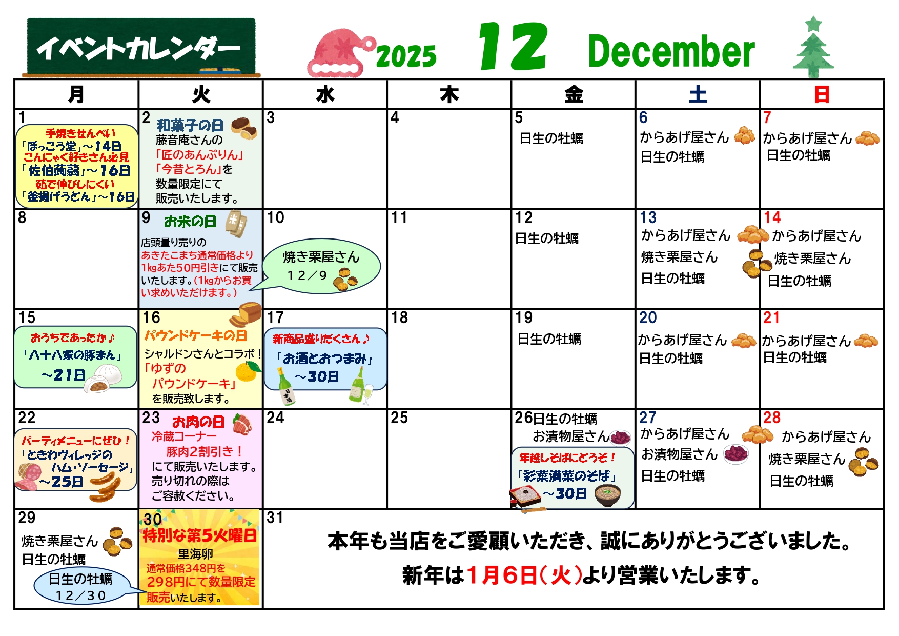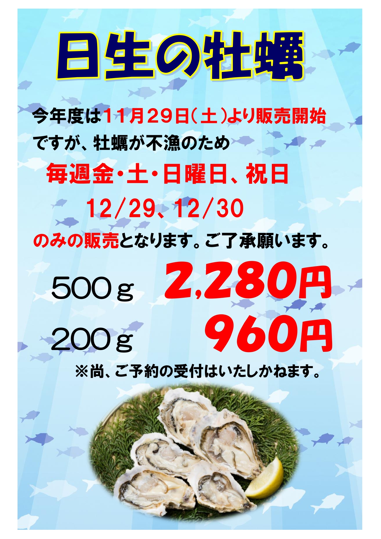 不漁のため、販売日を毎週金・土・日と祝日、12月29・30日とさせていただきますことをご了承願います。
