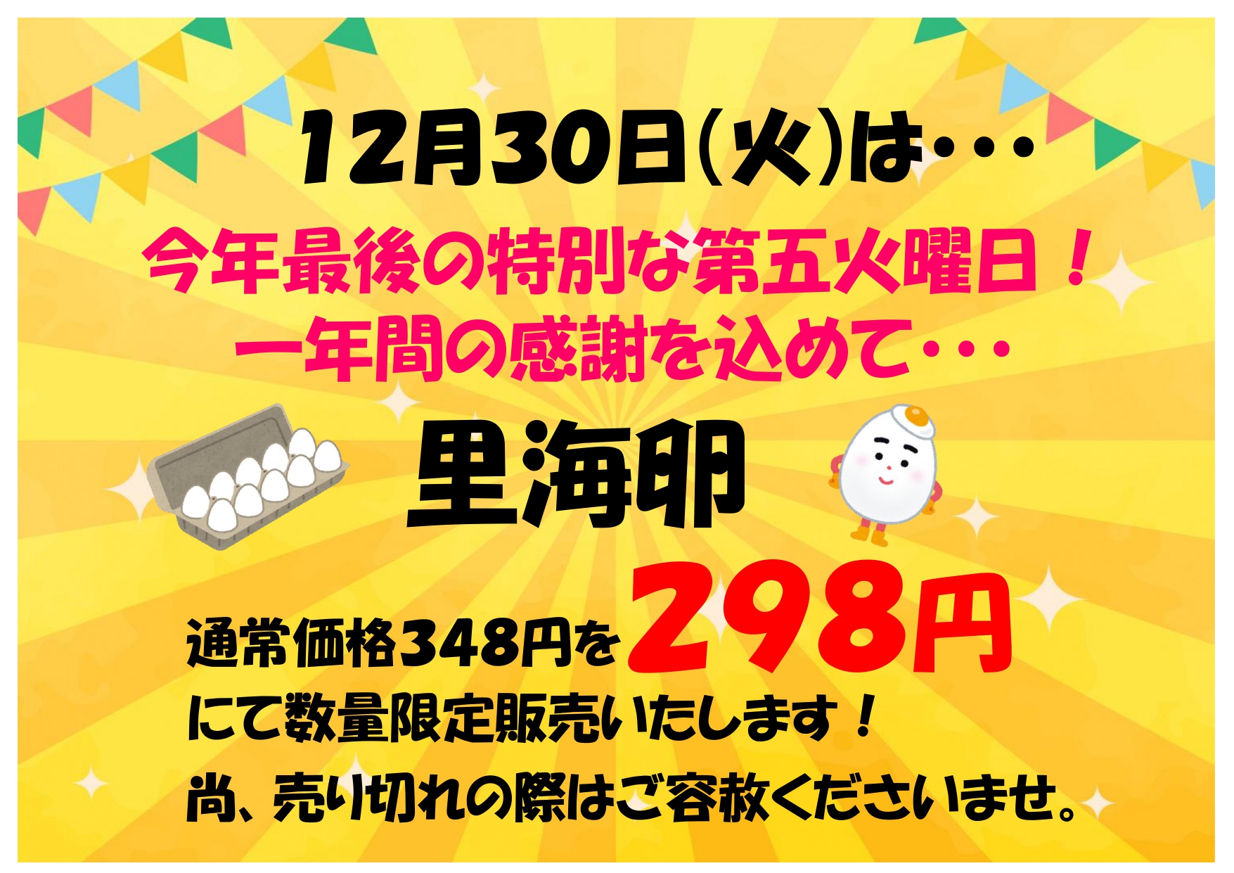 今年度は不漁の為、販売日を毎週金・土・日曜日と祝日、12月29・30日とさせていただきます。