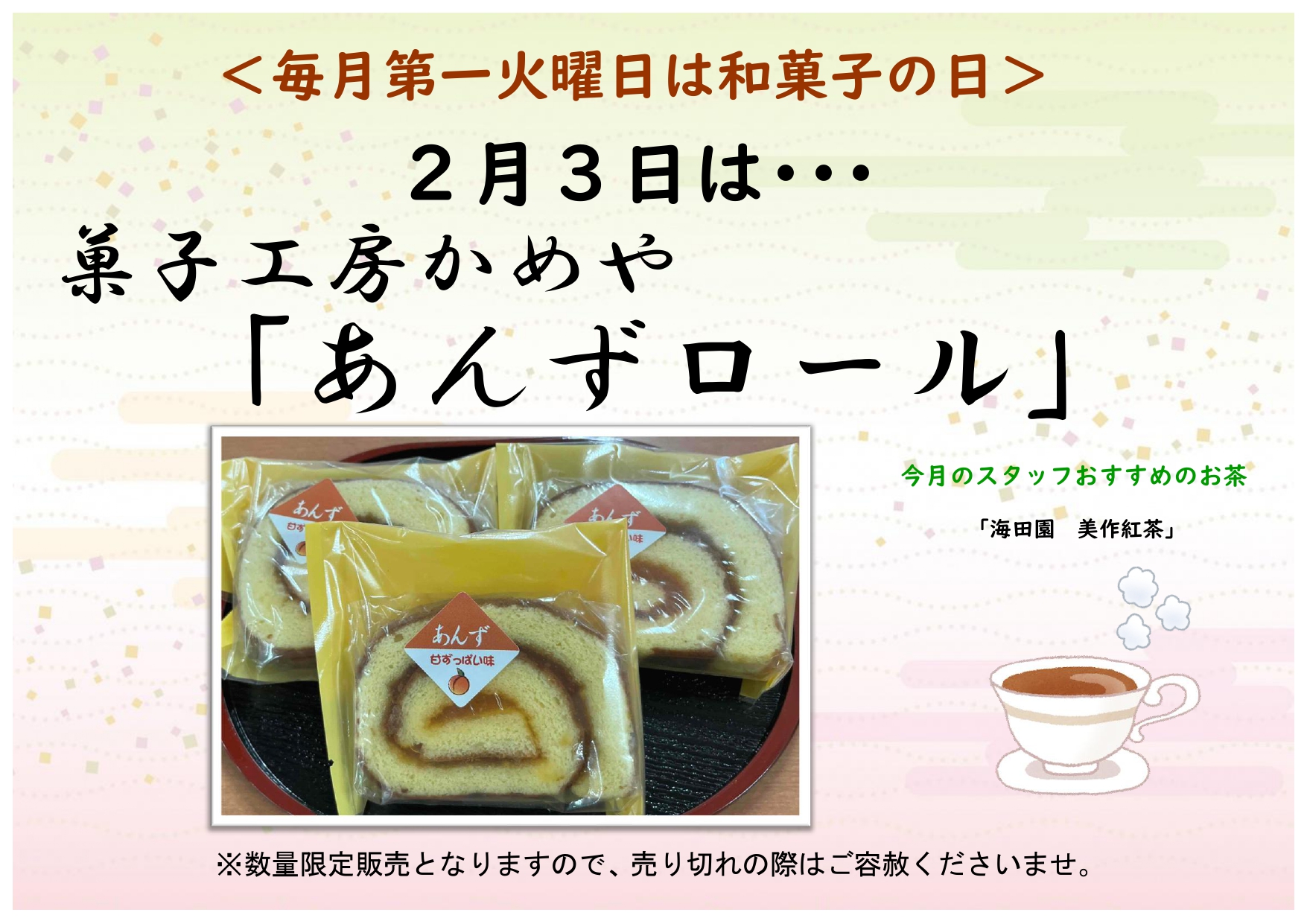 数に限りがございます。売切れの際はどうぞご容赦下さいませ。