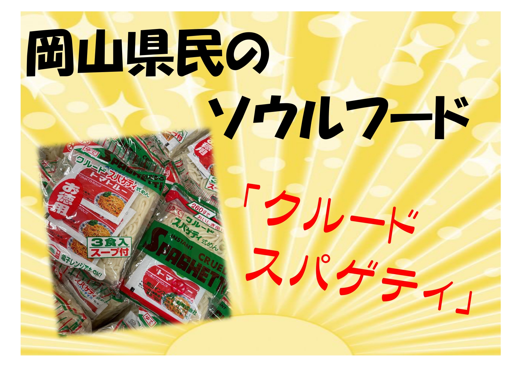 発売から今年還暦を迎える『クルードのスパゲティ』幼少期に遠足のお弁当に入っていたのを思い出すものです。